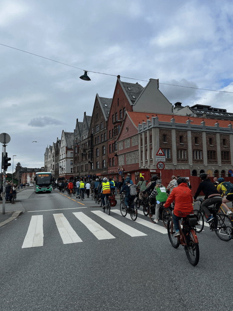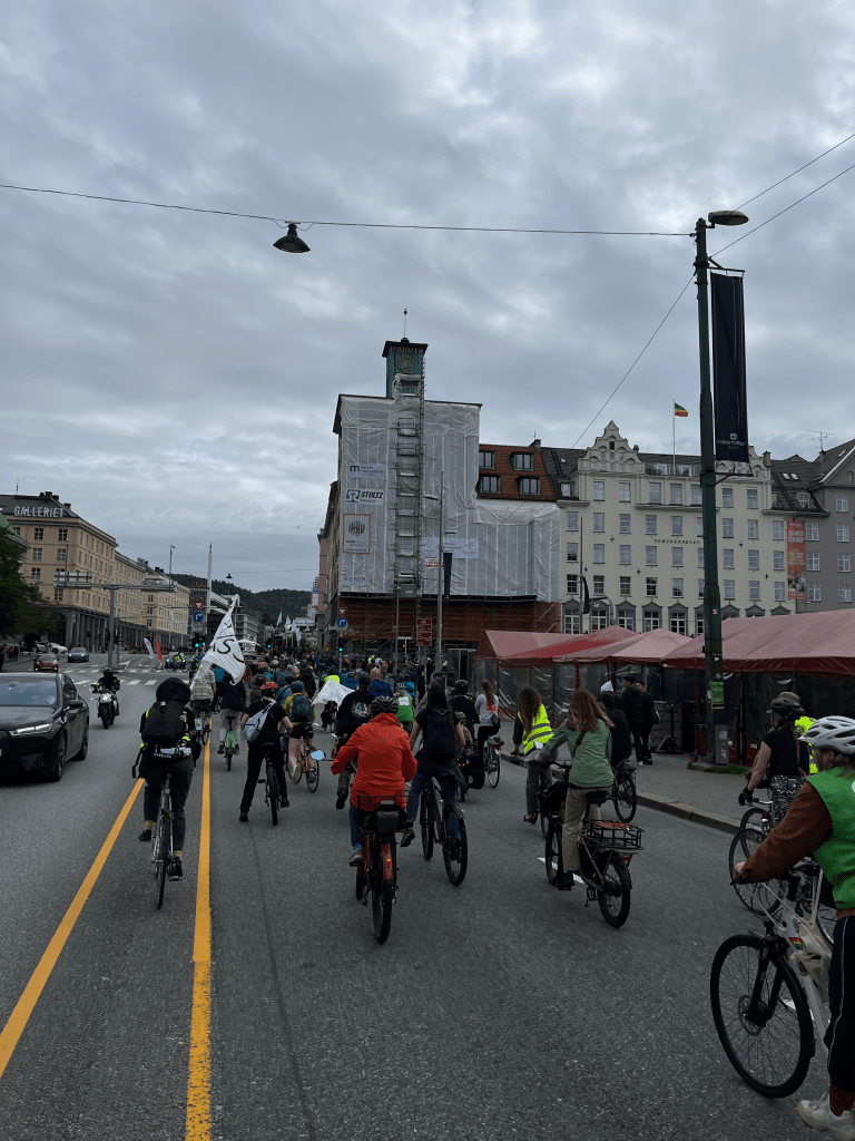 Noe som ble tydelig: Å sykle gir enorm glede – spesielt når man tar seg den plassen man har krav på, uten å måtte frykte for egen sikkerhet. Den 10 km lange turen viste også hvorfor Bergen ennå ikke kan regnes som en ekte sykkelby. Ofte mangler det fullstendig sykkelinfrastruktur. Noen steder er det bare litt maling på bakken – og sjeldnere, men likevel – finner man en fysisk adskilt sykkelvei.